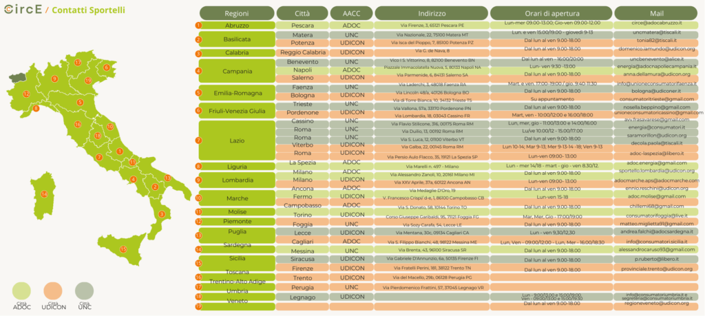 CirCe – Circular Energy & Circular Economy”, nasce dalla collaborazione tra UNC – Unione Nazionale Consumatori APS, U.Di.Con APS, ADOC APS, UNC Comitato di Faenza APS, Udicon Lazio APS, Udicon Calabria APS, ADOC ABRUZZO APS, e finanziato dal Ministero del Lavoro e delle Politiche Sociali tramite l’Avviso n.2/2023 per il finanziamento di iniziative e progetti di rilevanza nazionale ai sensi dell’articolo 72 del decreto legislativo 3 luglio 2017, n.117 e s.m.i., anno 2023.